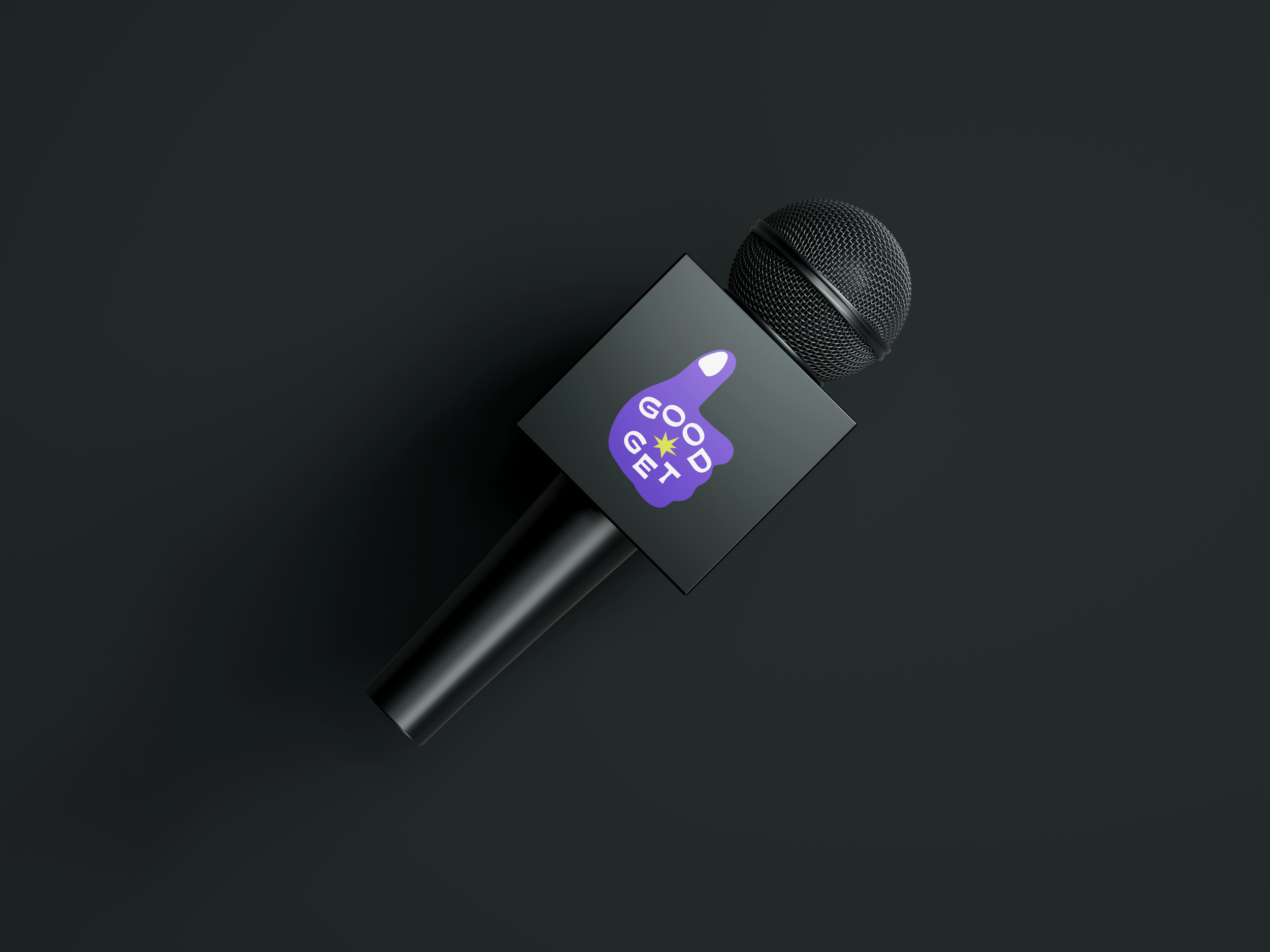 The Good Get logo combines a hand-drawn thumb, playful typography, and a bold starburst to reflect the brand’s witty, human energy. Imperfect and expressive, it captures the spontaneous creativity at the heart of the comedy podcast studio.